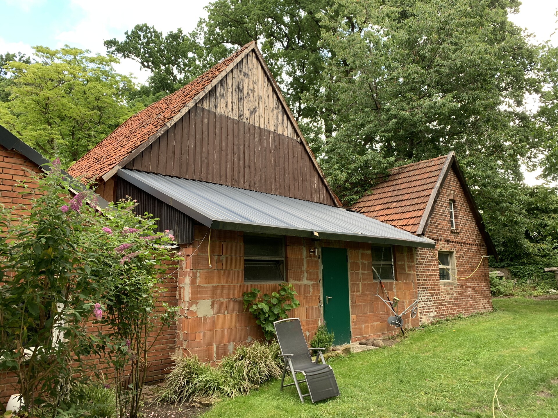 Die zur Hofstelle gehörenden Gebäude bestehen aus dem Hauptgebäude mit angrenzendem Scheunengebäude, einer Remise, dem historischen Stall (geschätztes Baujahr 1786), sowie einem weiteren, kleinen Anbau, der als Werkstatt und Abstellraum genutzt wird. Von der in den 1970-er Jahren, nach einem Brand neu errichteten Scheune, sind rd. 200 m² Nutzfläche an einen Handwerksbetrieb zu Lagerzwecken vermietet (200 € Mieteinnahme/Monat).
