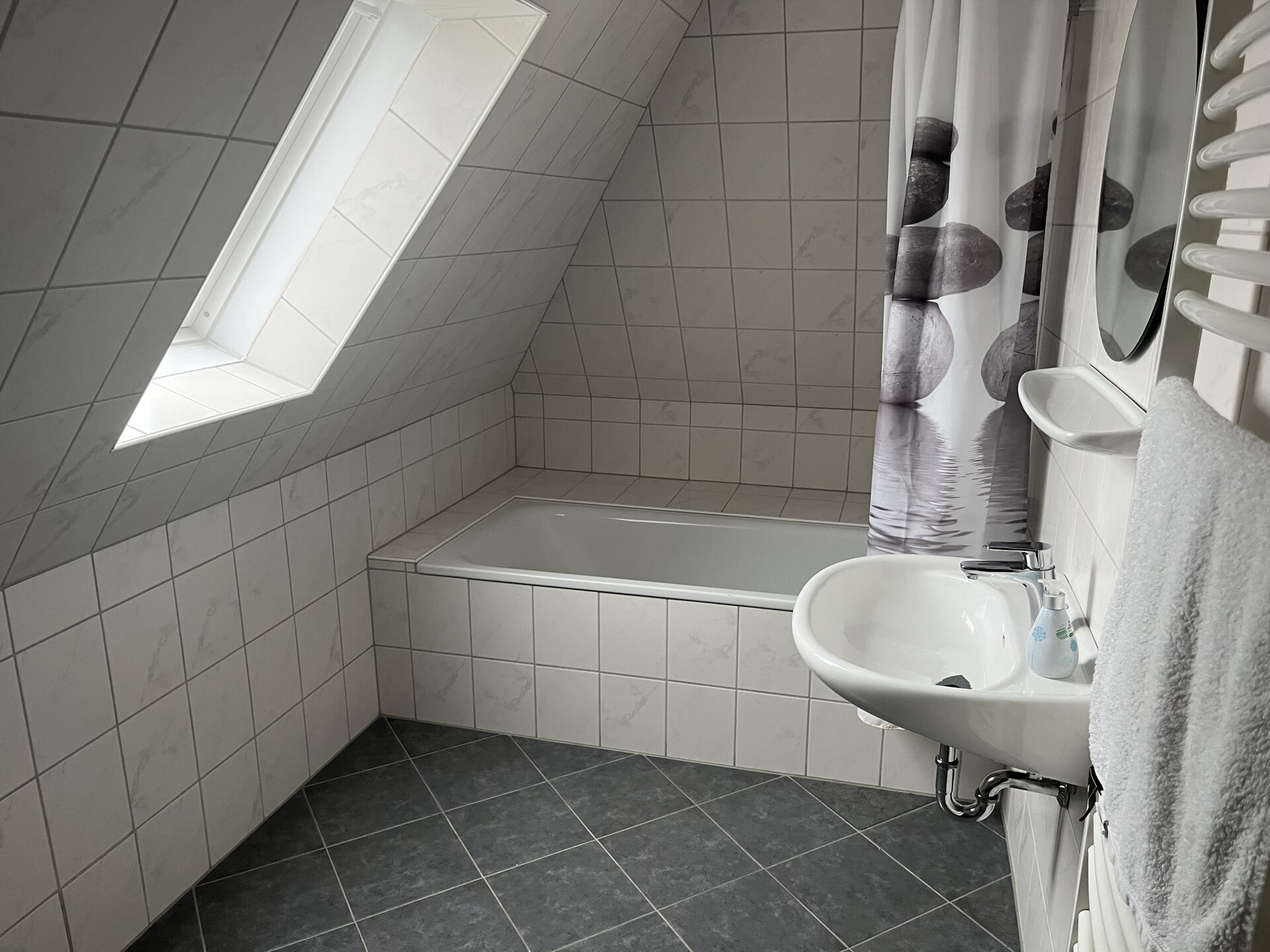 Die Räumlichkeiten sind mit Laminatböden und Raufasertapete versehen. Das Bad ist hell gefliest.